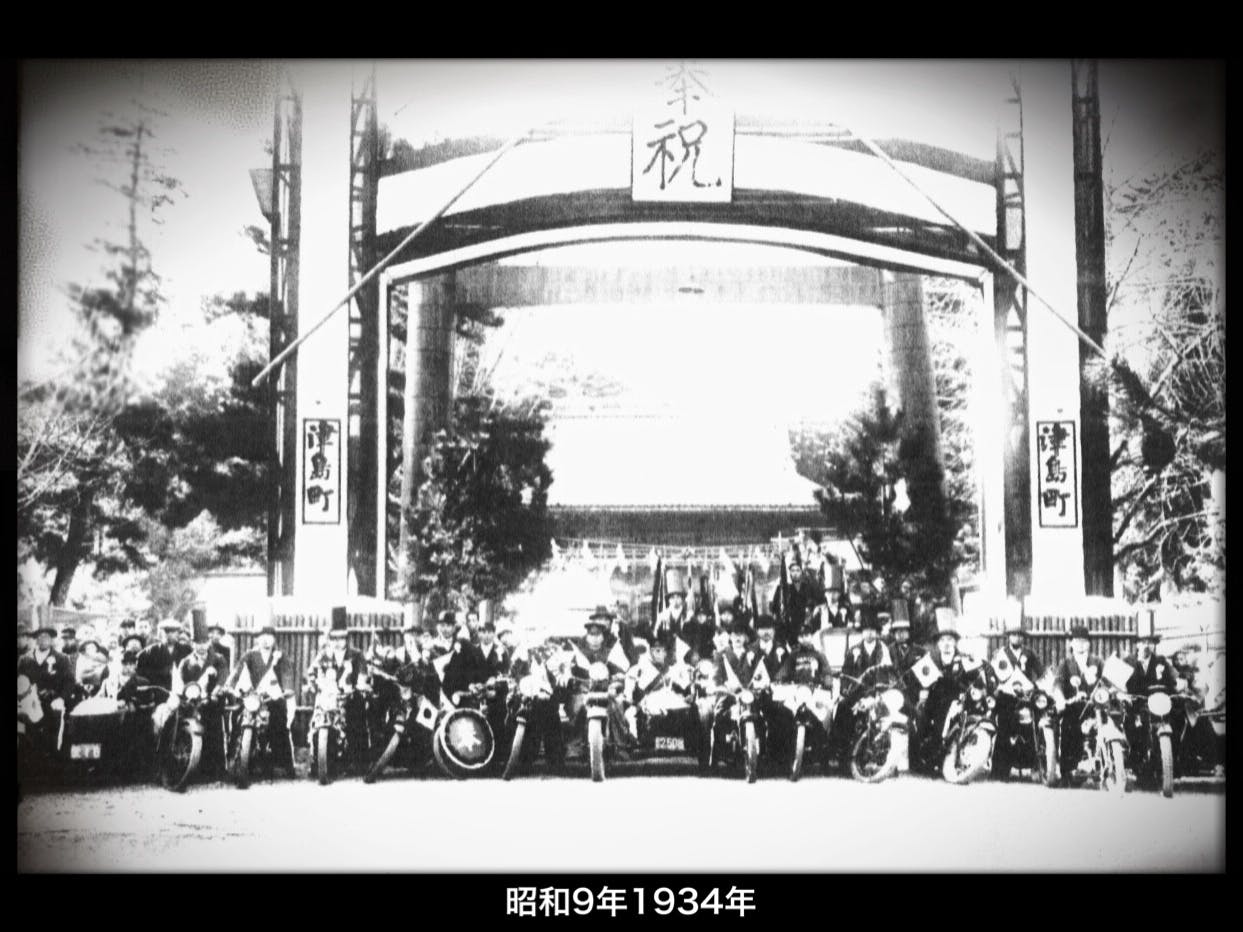 ※津島神社での撮影は、関係各所の協力によって行いますが、当日の撮影環境等により、掲示の戦前の写真とは異なる構図などでの撮影になる場合があります。(また現在、天王川公園の池端ではバイクの通行は認められていません)