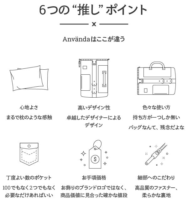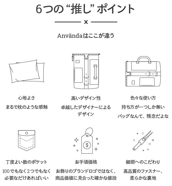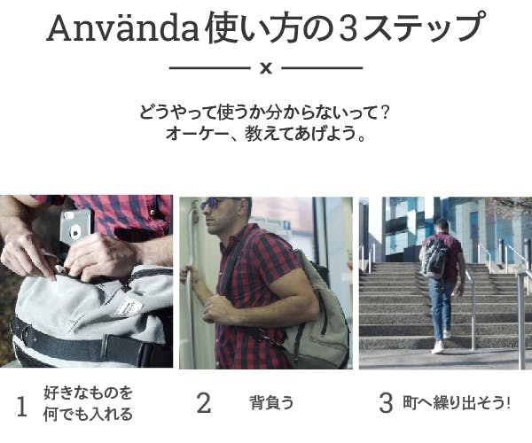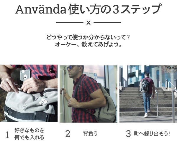 それと一つだけ言わせていただきい。スーツは男を1.5倍カッコよく見せるなんて聞いたことがあるが、ちょっと待ってくれ。「Använda」のバッグは君を150倍カッコよくしてくれるんだぜ?? さあ、わかったら40秒で支度して、さっさと「Använda」背負って外に出よう!