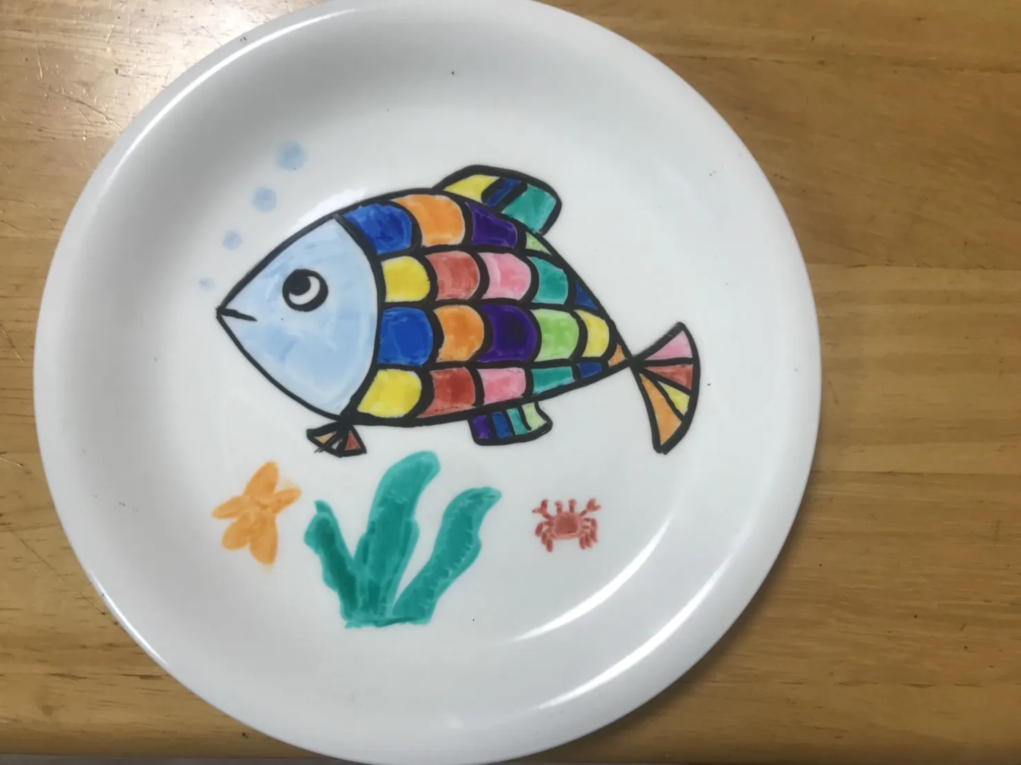 ①「らくやきマーカー」という特殊なペンを使ってお皿にお絵かきします。