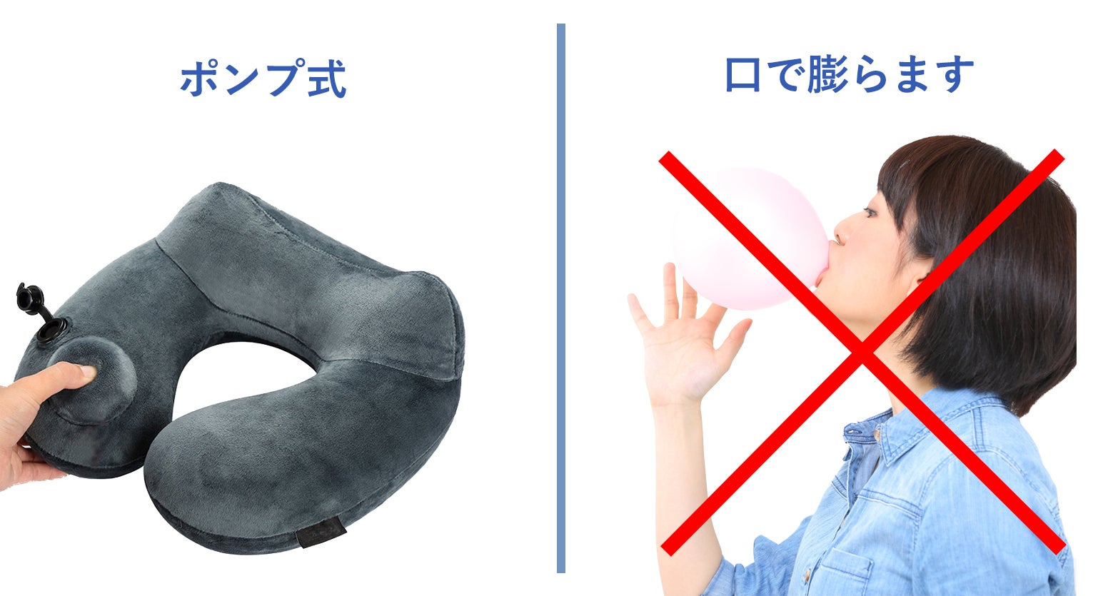 従来の口をつけて膨らませる物と違い、衛生面も万全。