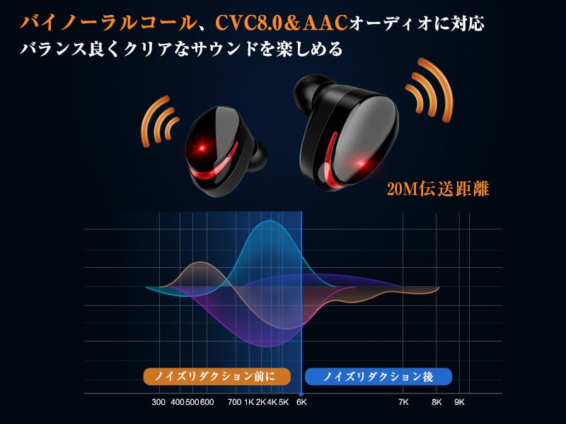 AACコーデック対応により、純音信号の高音質なワイヤレスイヤホンです。途切り、音漏れ、音遅れなどの心配も要りません。