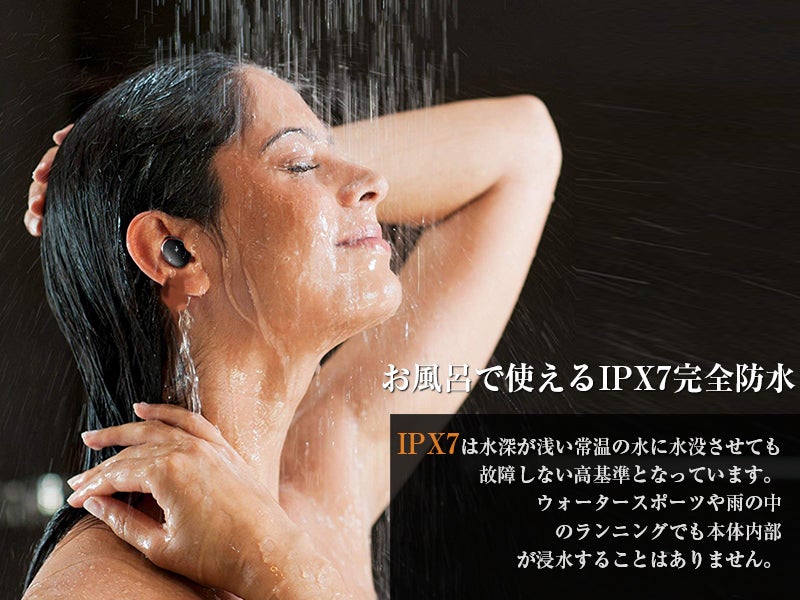 【IPX7完全防水】水の侵入を防ぐ、水洗い、汗や水しぶき、急な雨などからイヤホンを守る防水仕様。