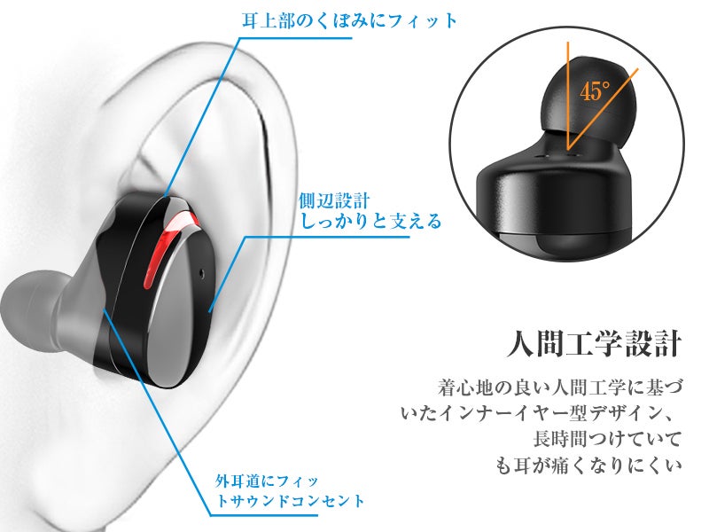 フィット感抜群:片耳イヤホンの重さが僅か4.2gだけ!耳の上部にフィットし、イヤホンを耳にしっかりと固定できますので、長時間つけても耳が痛くなりません。ランニングやジョギング、スケートなど運動時、運転中、仕事時も外れることがありません。