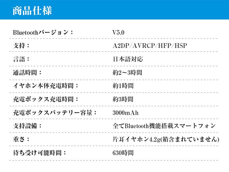 充電ケース電池容量: 3000mAh