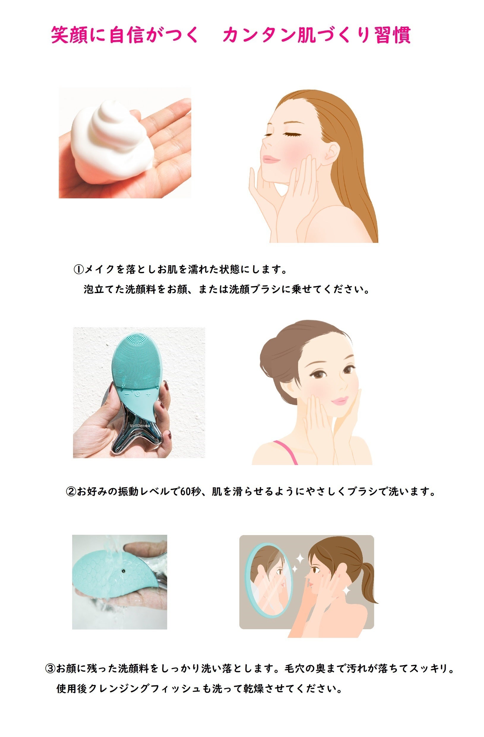 ・シリコンブラシの太いところで鼻の周りを重点的に、細いところで顔全体のクレンジング。