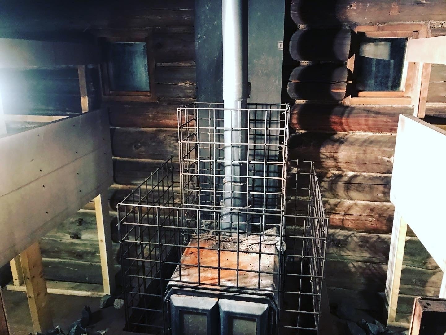 サウナのメンテナンスを通じて変更した点は、サウナストーブのサイドにレンガを置いて、サウナストーンの位置を高く積みました。そうすることで、熱効率がもっと良くなるだろうという見立てです。凶と出るか吉と出るかはまだ良くわかっておりません……。