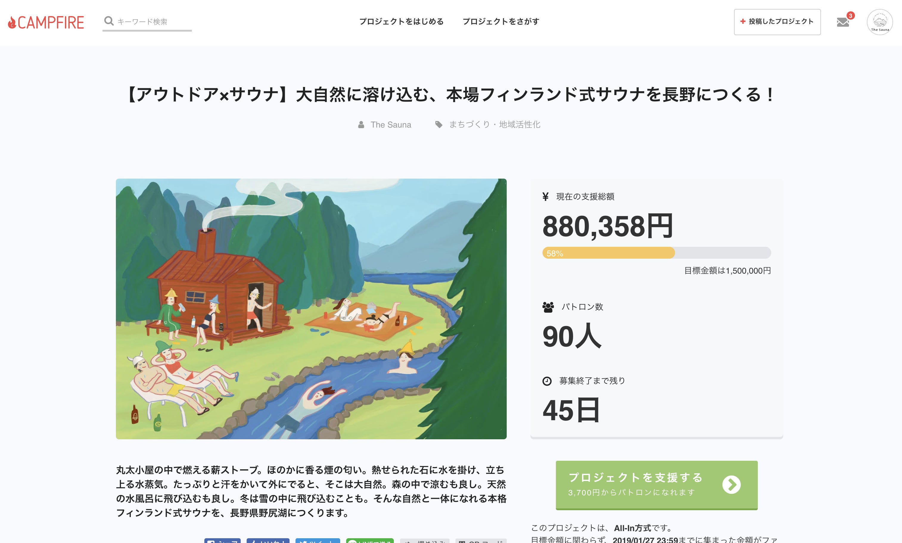 現在、達成率57%、90人の方からご支援をいただき、880,358円ほど集めることができました! パトロンの皆様、本当にありがとうございます!