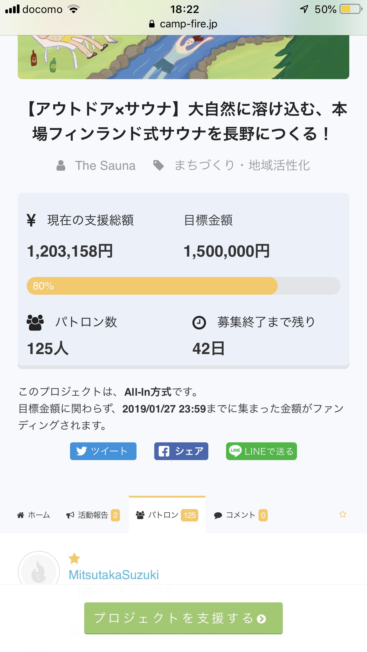 現在、支援率80%、支援金額1,203,158円となりました! ご支援していただいた皆様、本当にありがとうございます…!