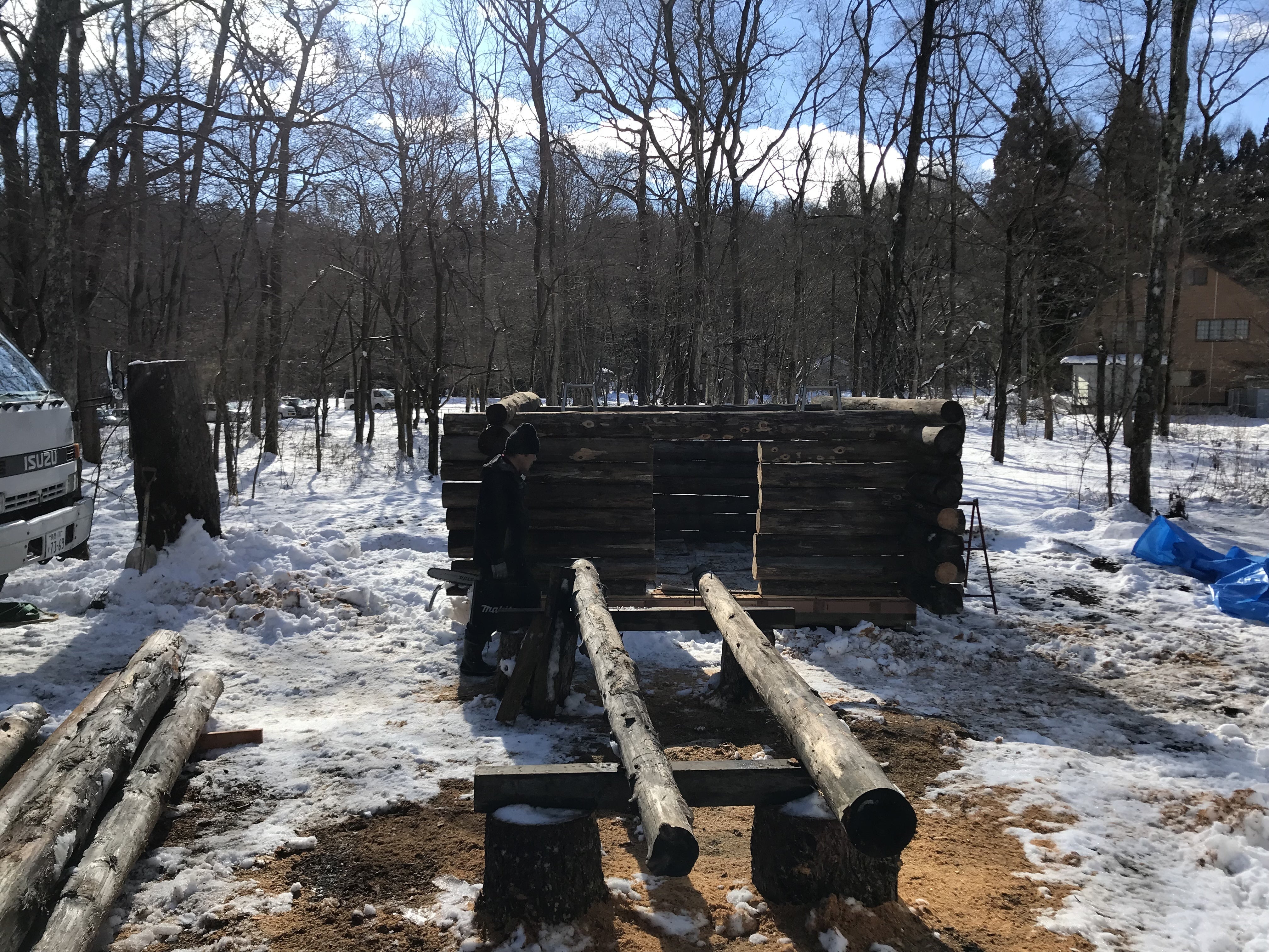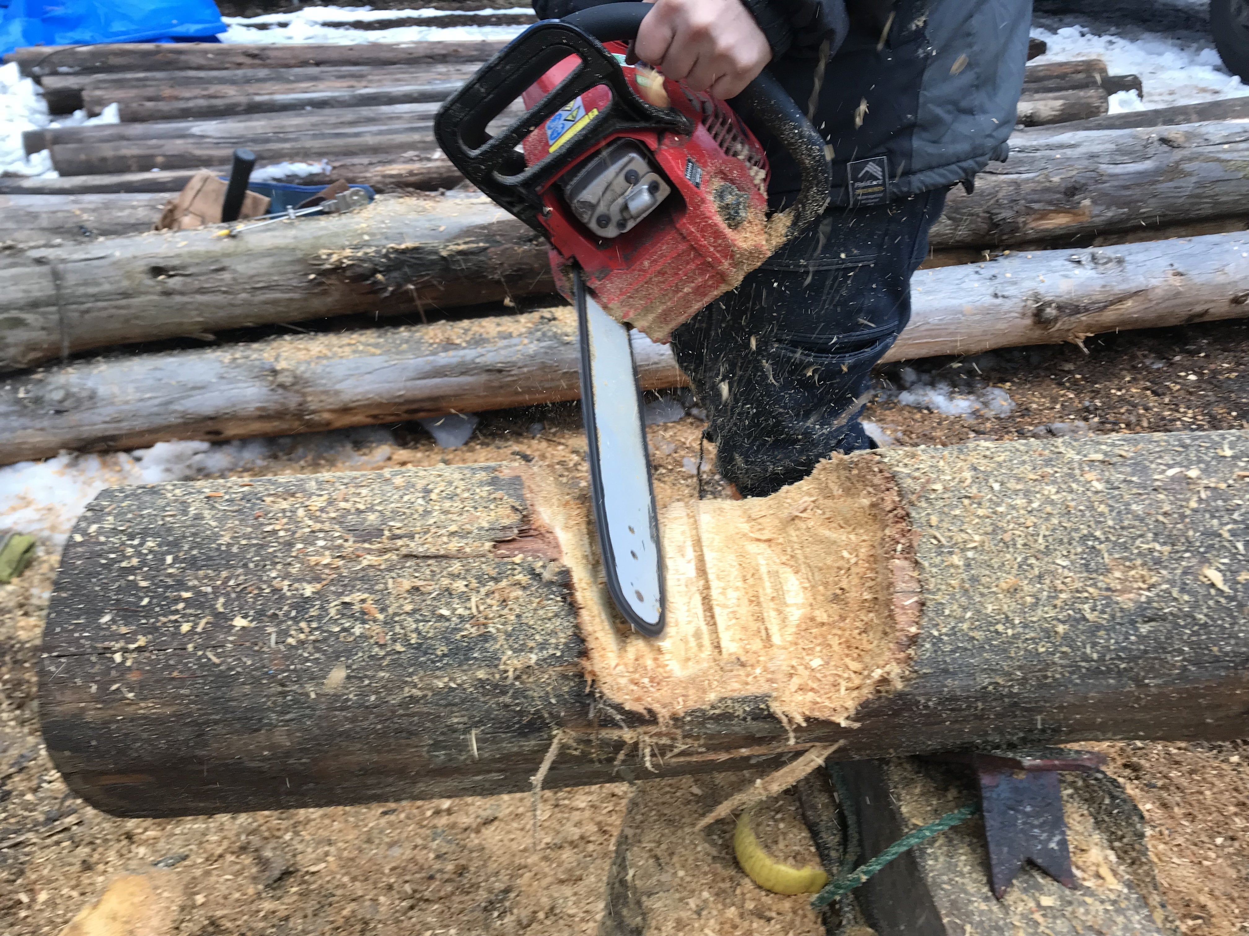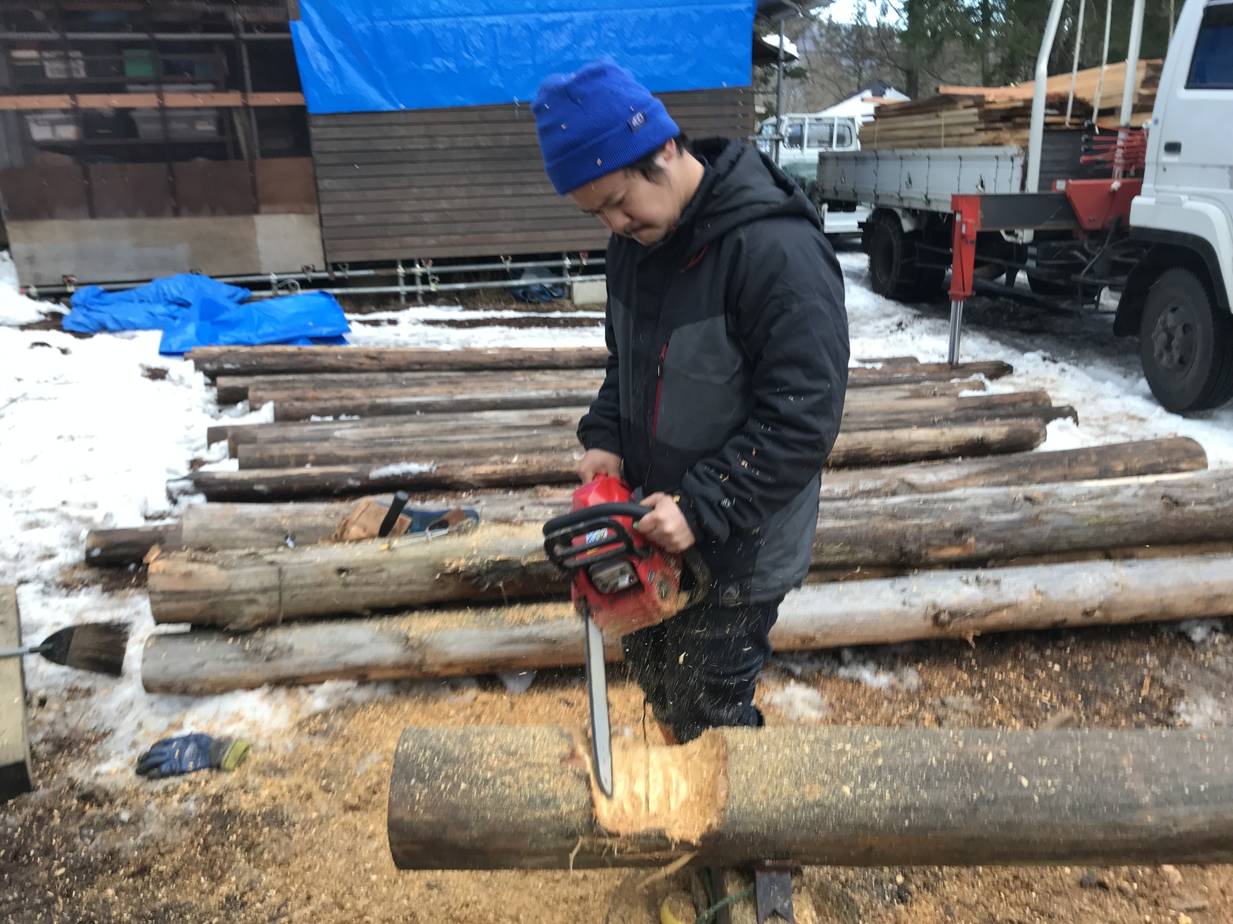 職人さんにお願いして、僕もログハウスの加工をお手伝いささてもらってます! 最初絶対できないと思ってたけど、やってみないとわからないですね!
