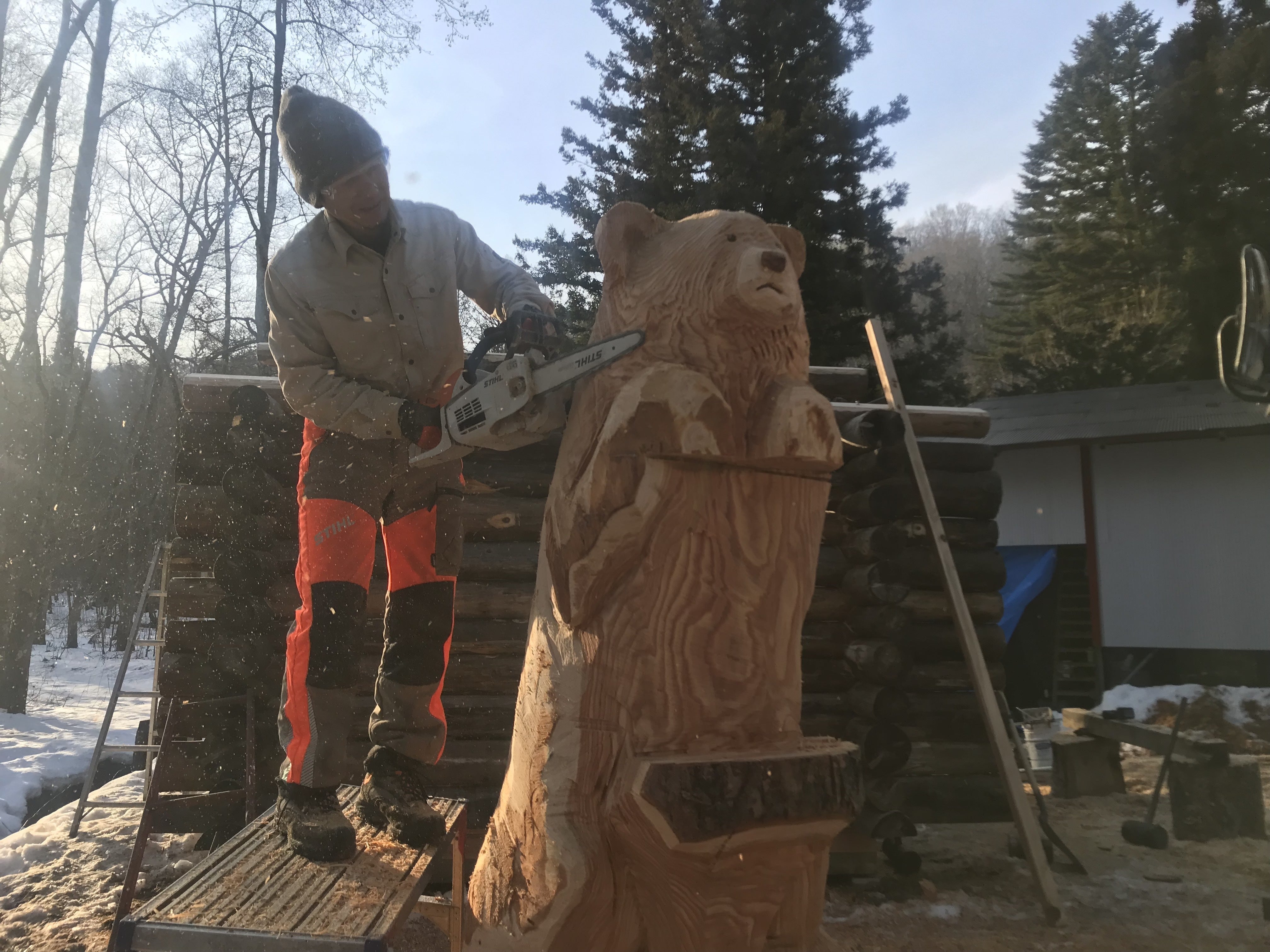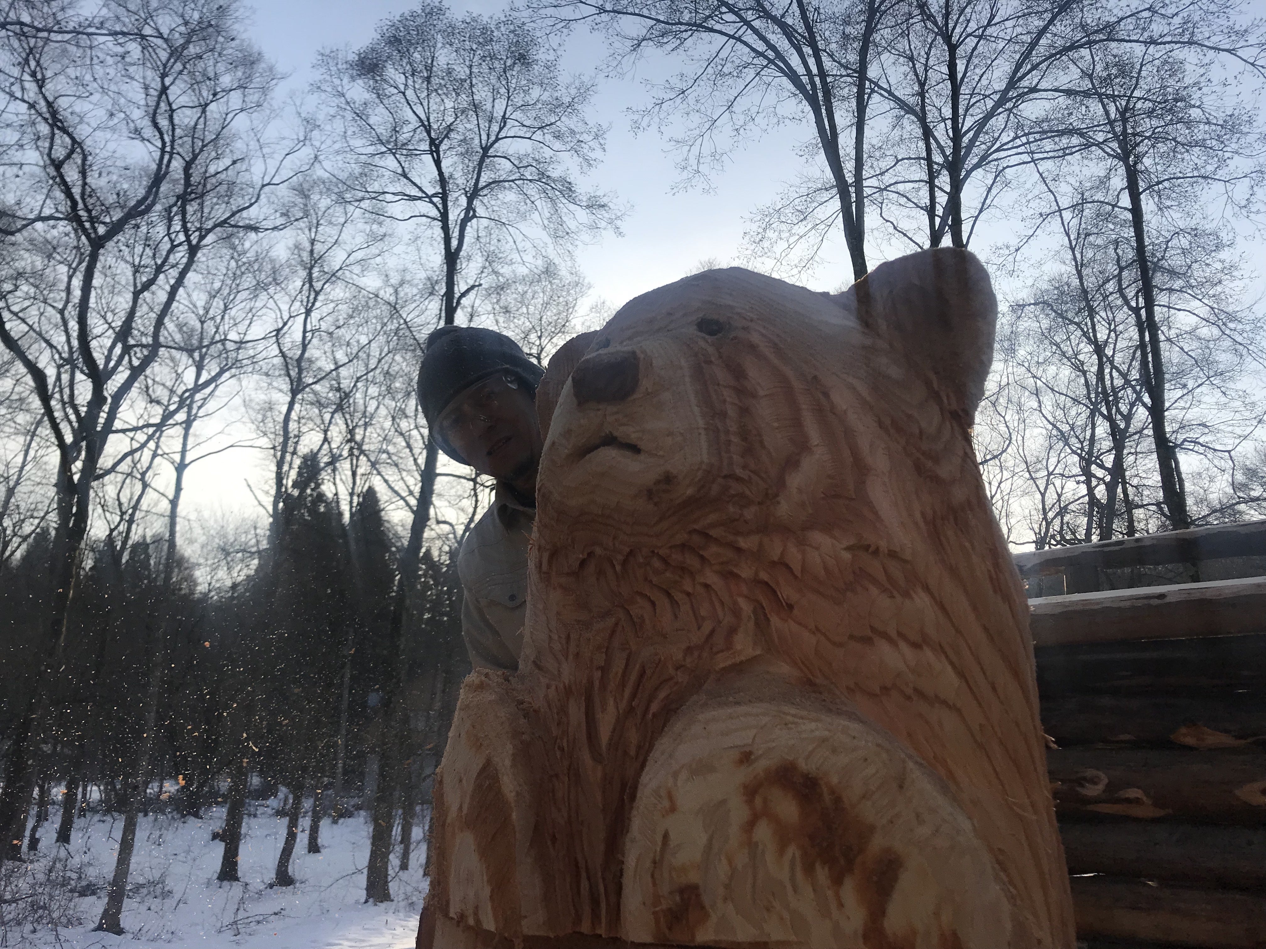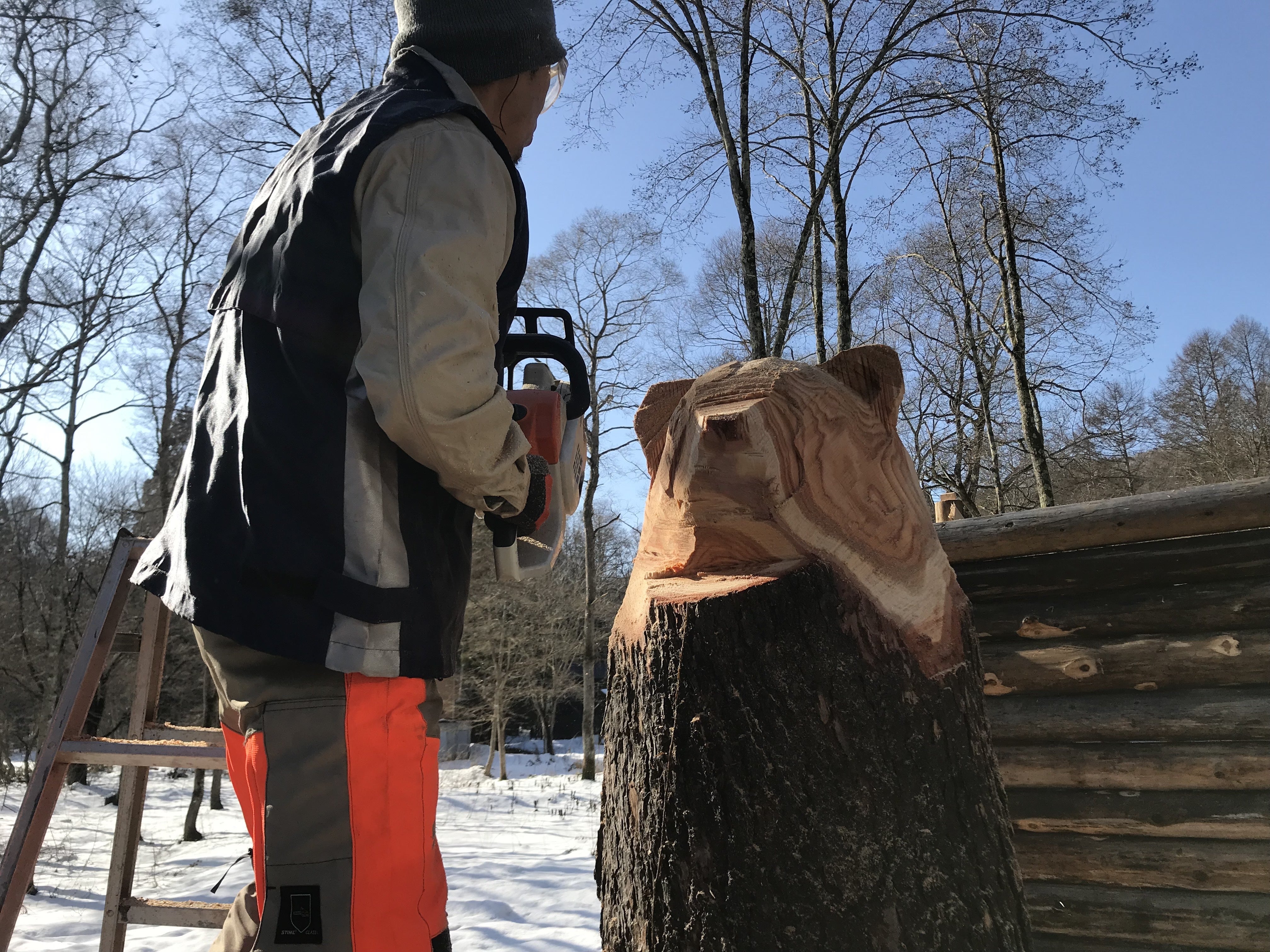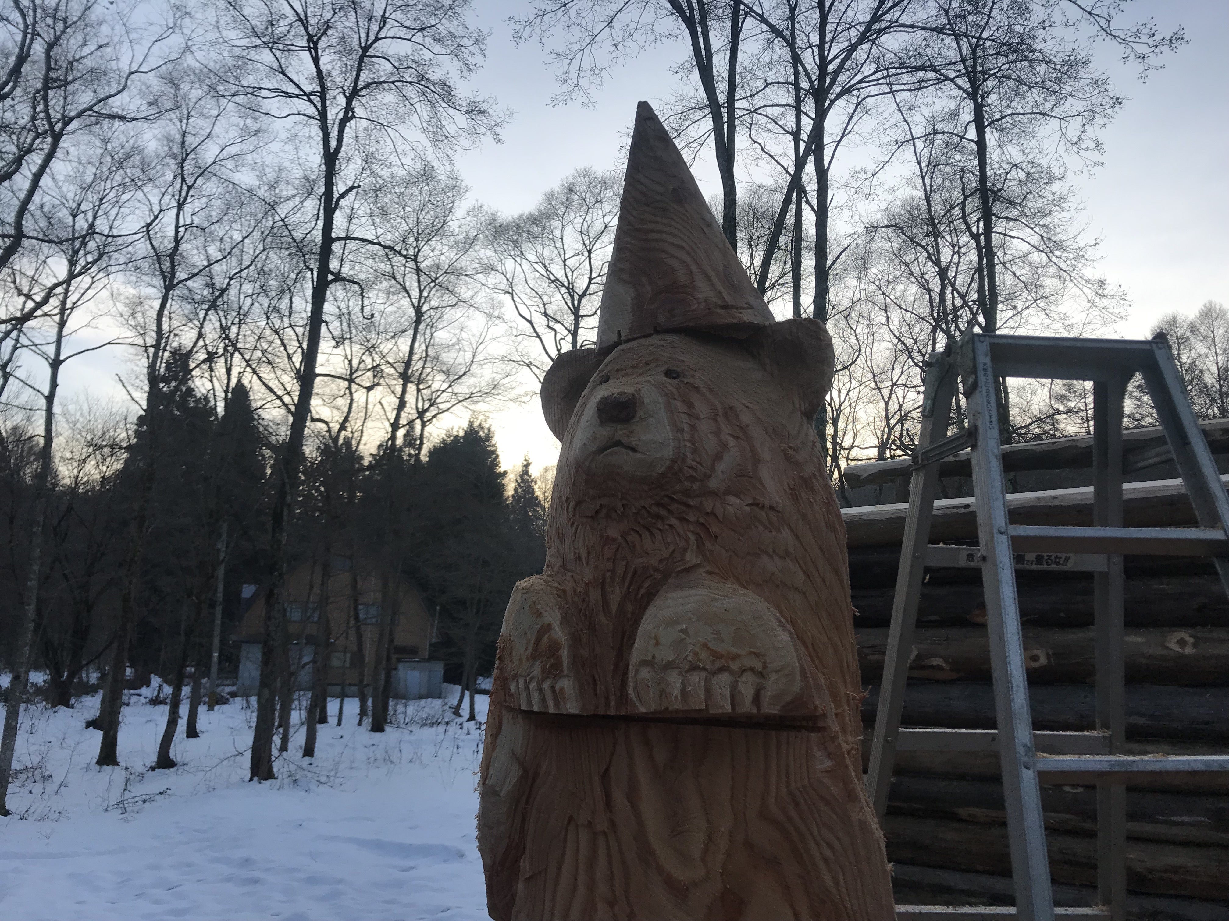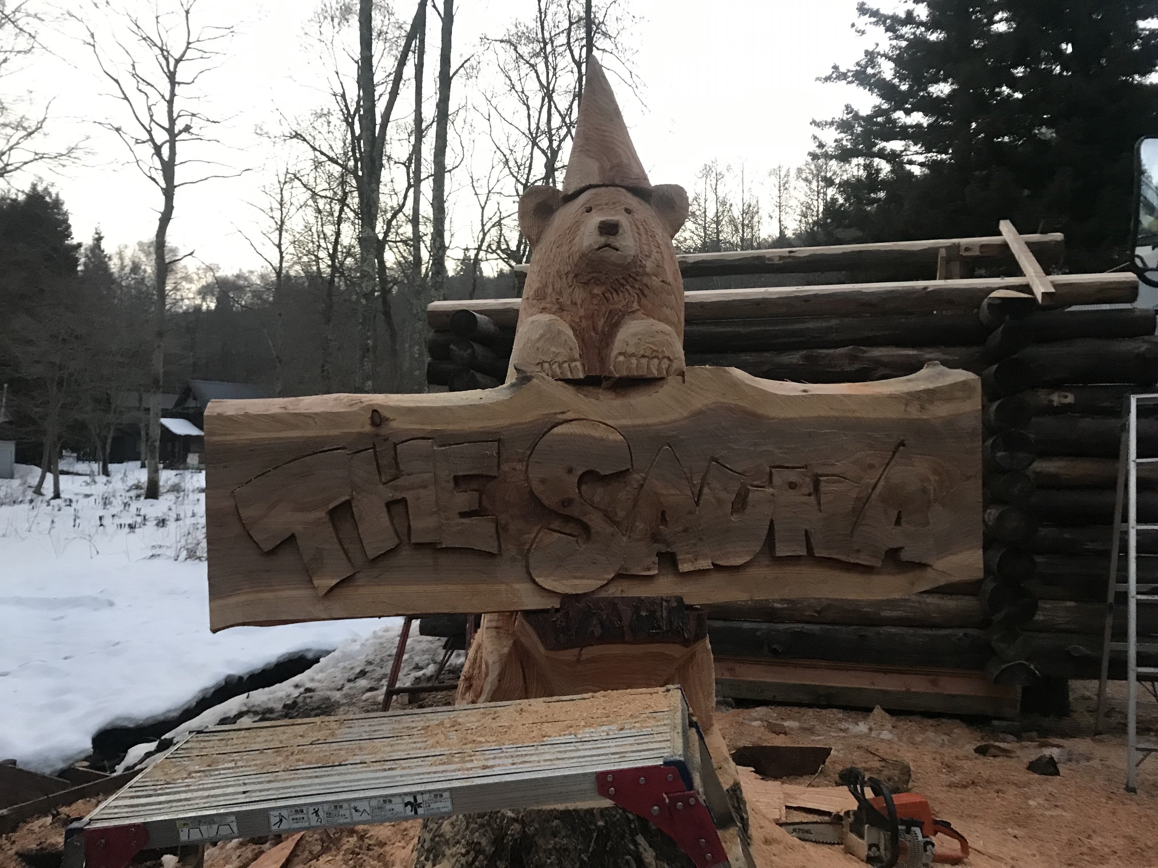 ゲストハウスLAMPにたまたま来てくれたお客さんで、サウナの話をしたら趣味でチェンソーアートをやっていると。そう、本職じゃないのに…このクオリティ…すごすぎる…。