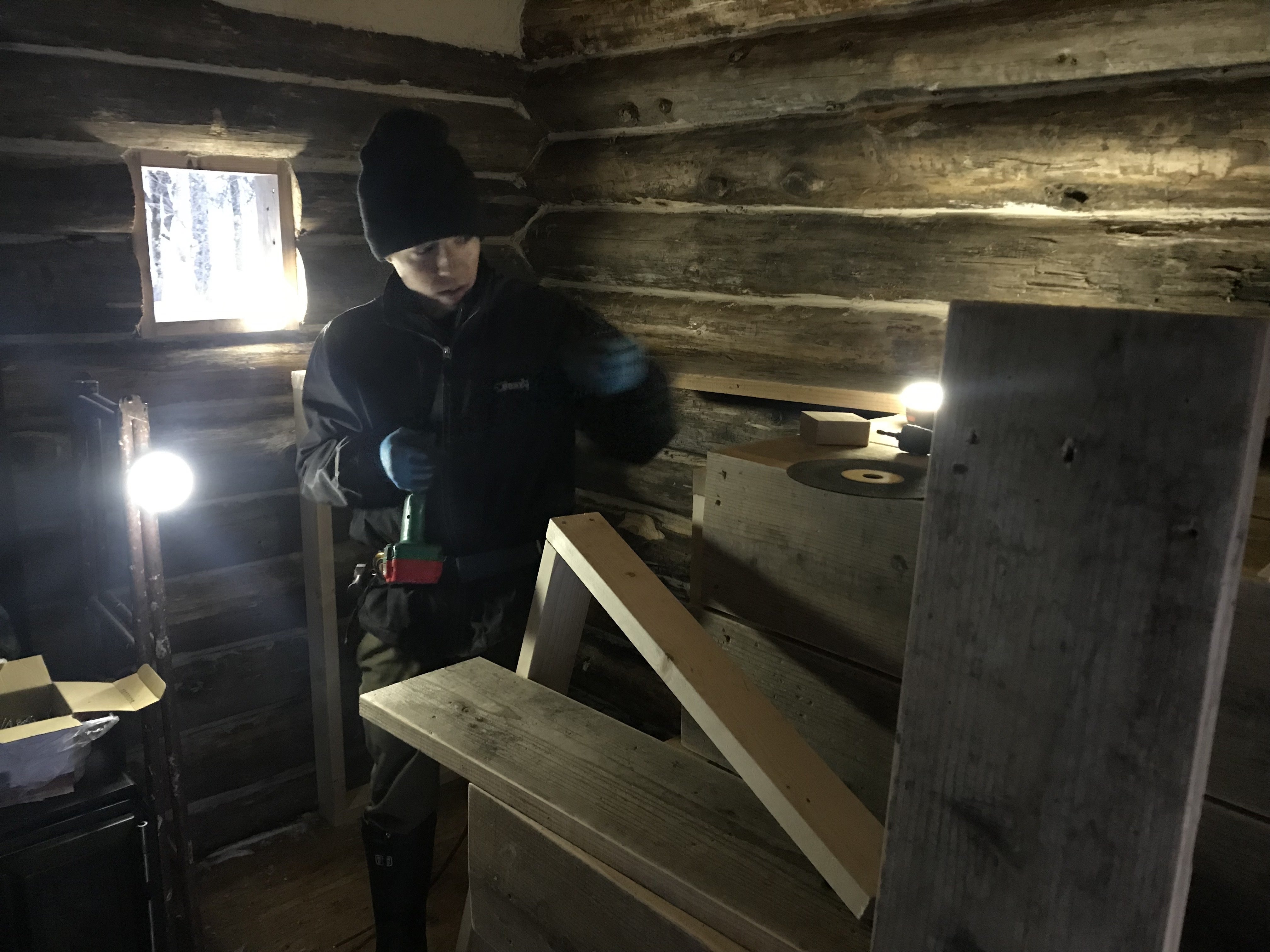 うちの天才大工(普段はアウトドアガイドをやってます)さんが、黙々と木を組み立てていきます。