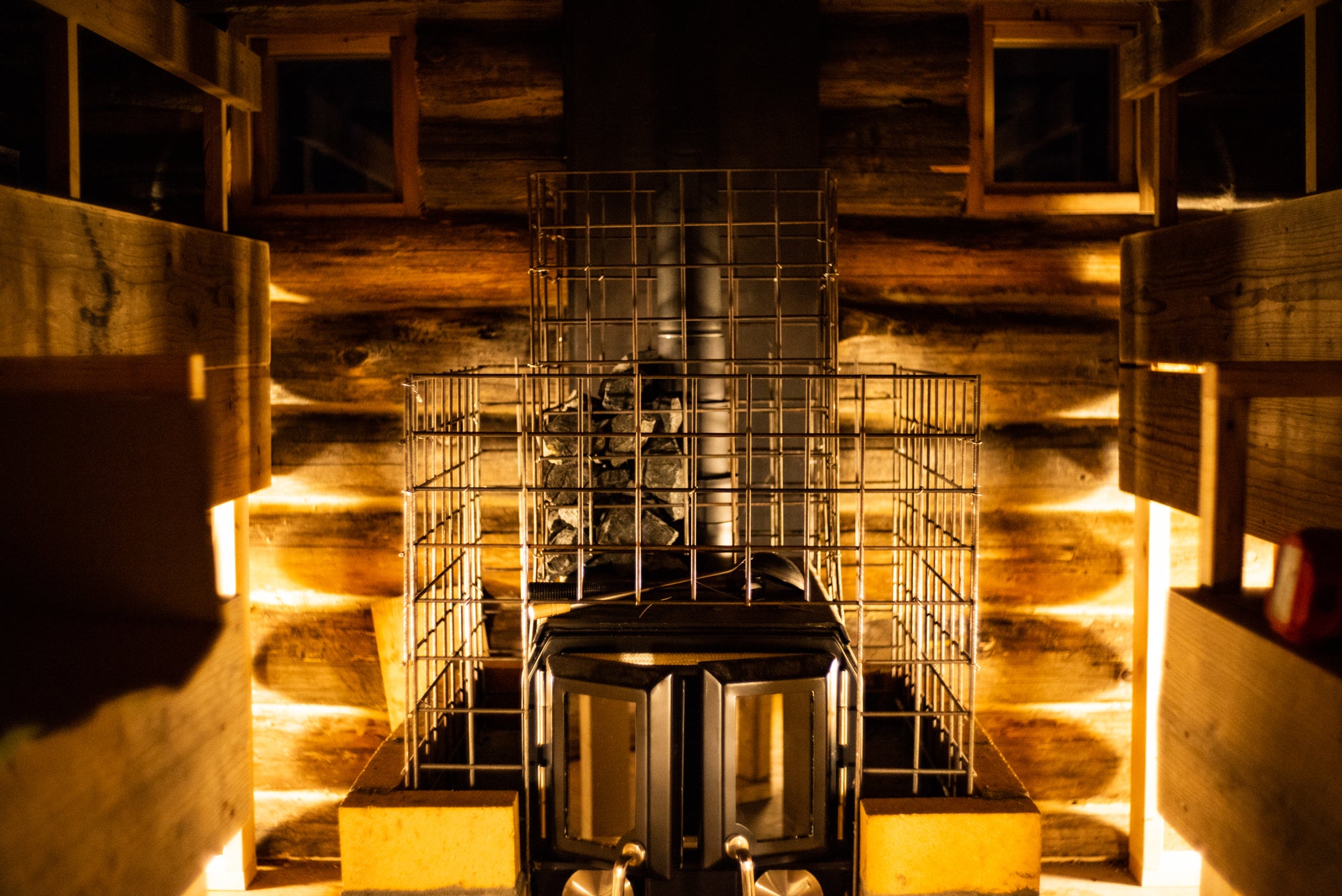 サウナストーンを積むようの柵もついに完成。