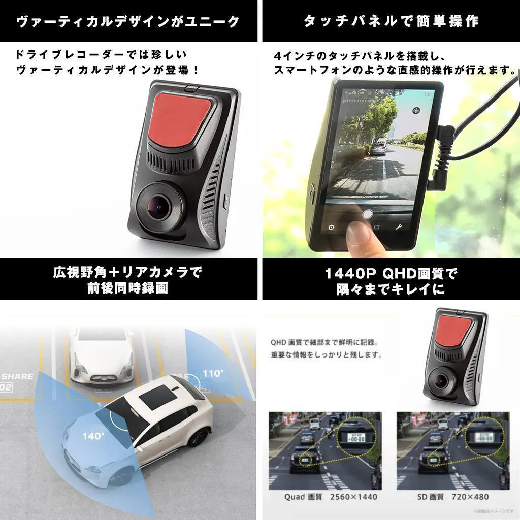 ②1440PのQHD超高画質フロントカメラで「見たまま録画」/リアカメラも720Pの高画質!