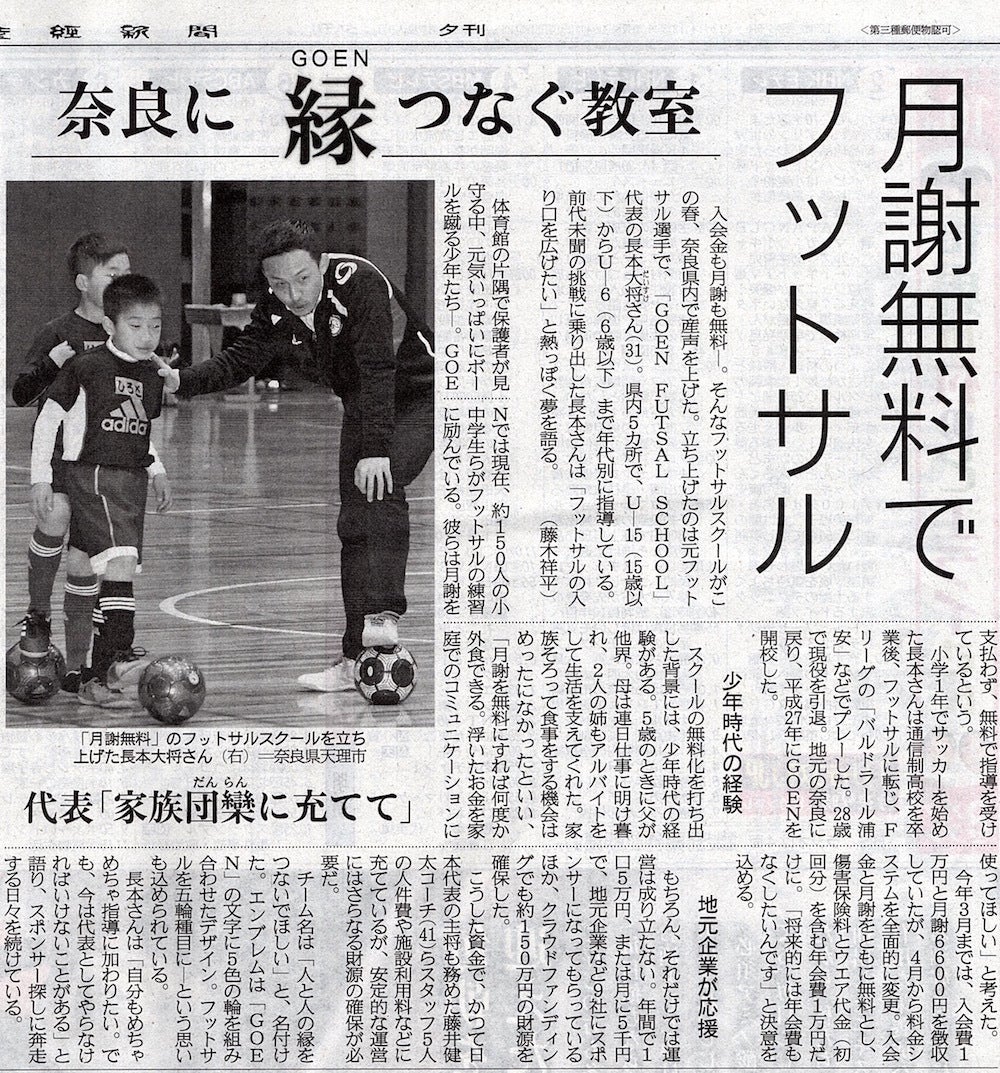 GOEN FUTSAL SCHOOL の代表をしております。