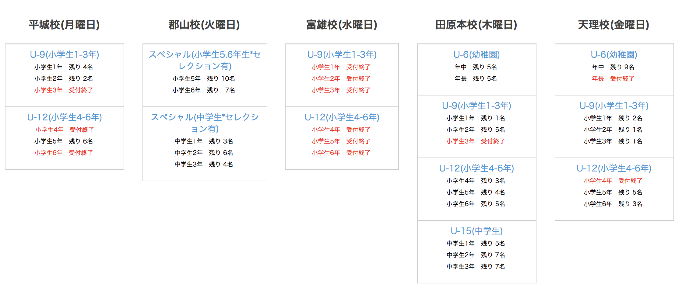 このままのペースで増えて行けば、年内にはほとんどのクラスが定員に達するでしょう。
