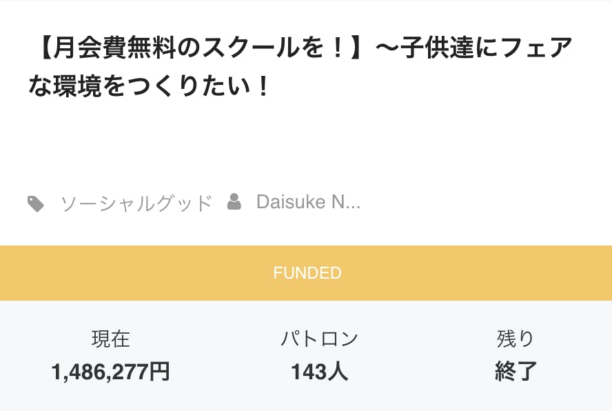 前回のプロジェクトでは143名もの方々にご支援頂きました。
