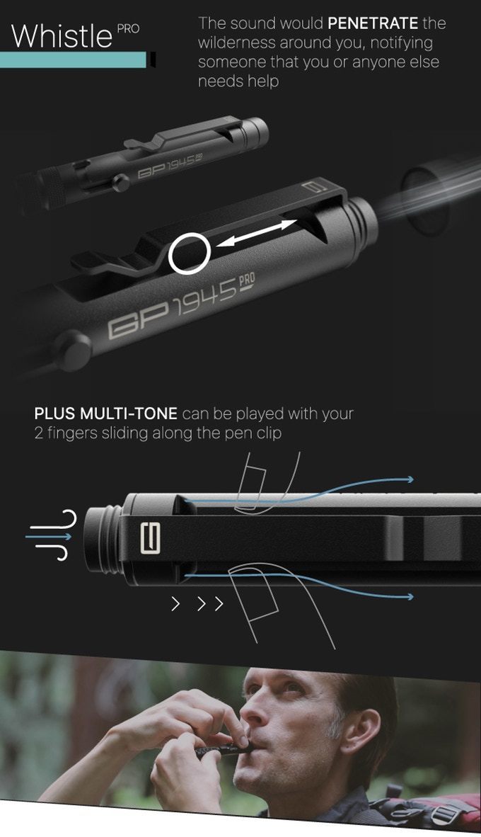ホイッスルを吹きながら、ペンクリップのサイドに沿って指をスライドさせることで音質を変えることができます。この機能は、単一周波数しか出せない一般商品とは大きく異なり、レスキューホイッスルと呼ぶにふさわしい機能です。最大100デシベル!