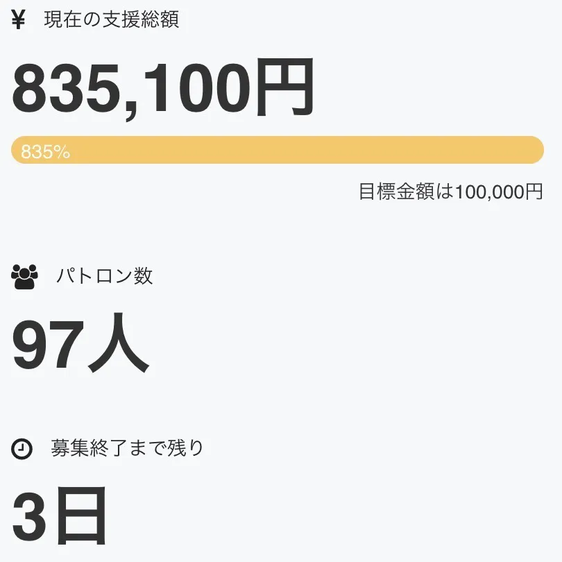 CAMPFIREの歴代11位まで到達したプロダクトも残り3日です!