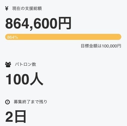 114名のパトロンの皆様のご支援で、976%の達成率となりました! 心より感謝申し上げます。 今後はお約束どおり、11月中のプロダクトの発送完了へ進んで行きますので、配送をお待ち下さい! 配送先の変更は10/23日、24時まで受け付けます。それ以降は変更できませんので、ご了承ください。 今後もトガッたプロダクトをご紹介してまいりますので、引き続き応援をよろしくお願いいたします。