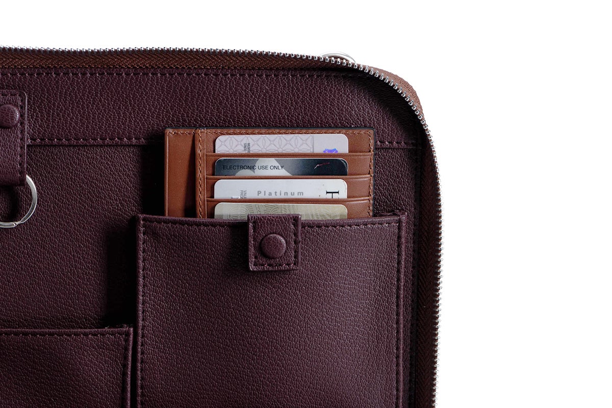 「FAIRE」カードウォレットは、現金とカードに加えて、領収書や名刺をすっきりと収納することができます「FAIRE」のブリーフケースやスリムクラッチのプルタブ・スロットにぴったり収まるようにデザインされていて、RFIDブロック技術でクレジットカードを詐欺行為から守ります。