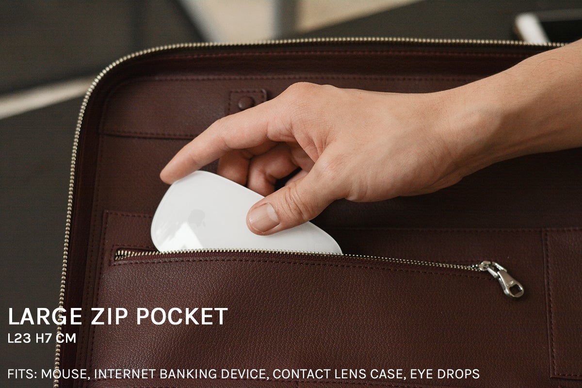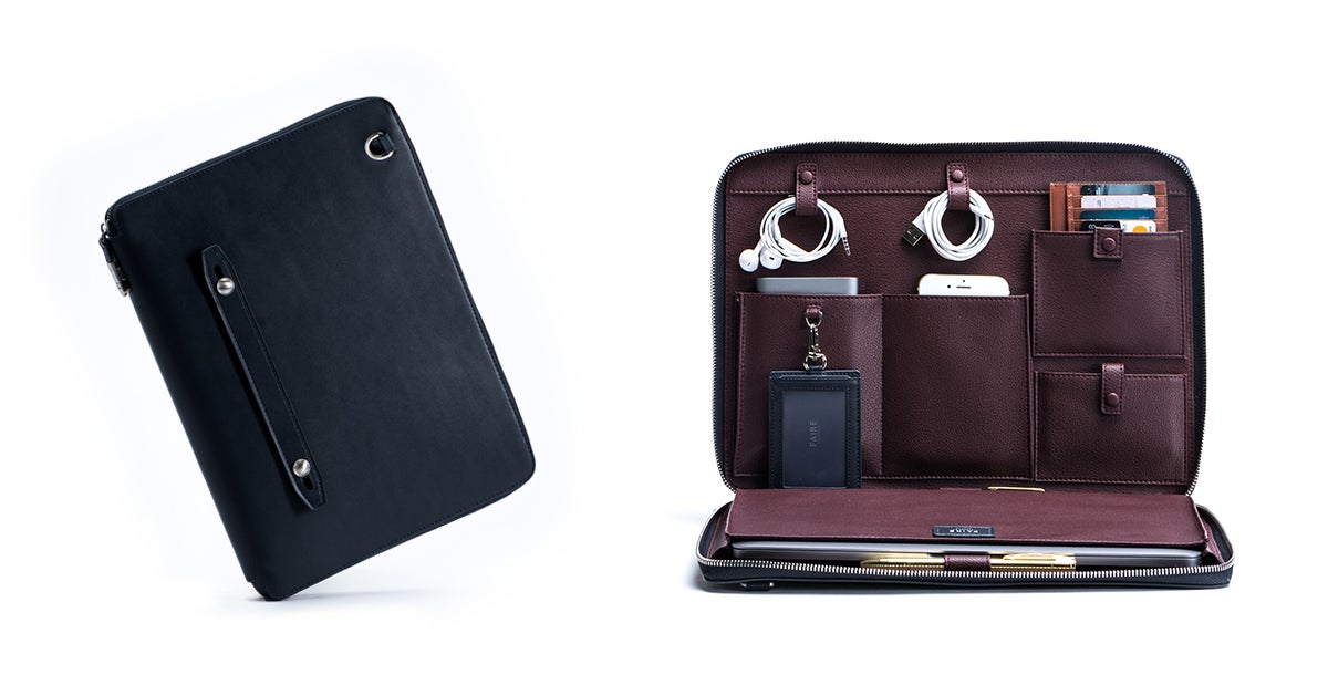 「FAIRE」スリムクラッチは、通勤や外出に大活躍するミニマル志向の薄型バッグです。ペンや名刺、スマートフォン、ポータブル充電器などの必需品を収納するポケットのほか、テック・コンパートメントを備えています。テックコンパートメントには、タブレットまたはA4サイズの書類がそのまま入ります。洗練された外装は、ビジネスミーティングで飛び回りながら、エレガントにテクノロジーを使いこなす人にはぴったりです。