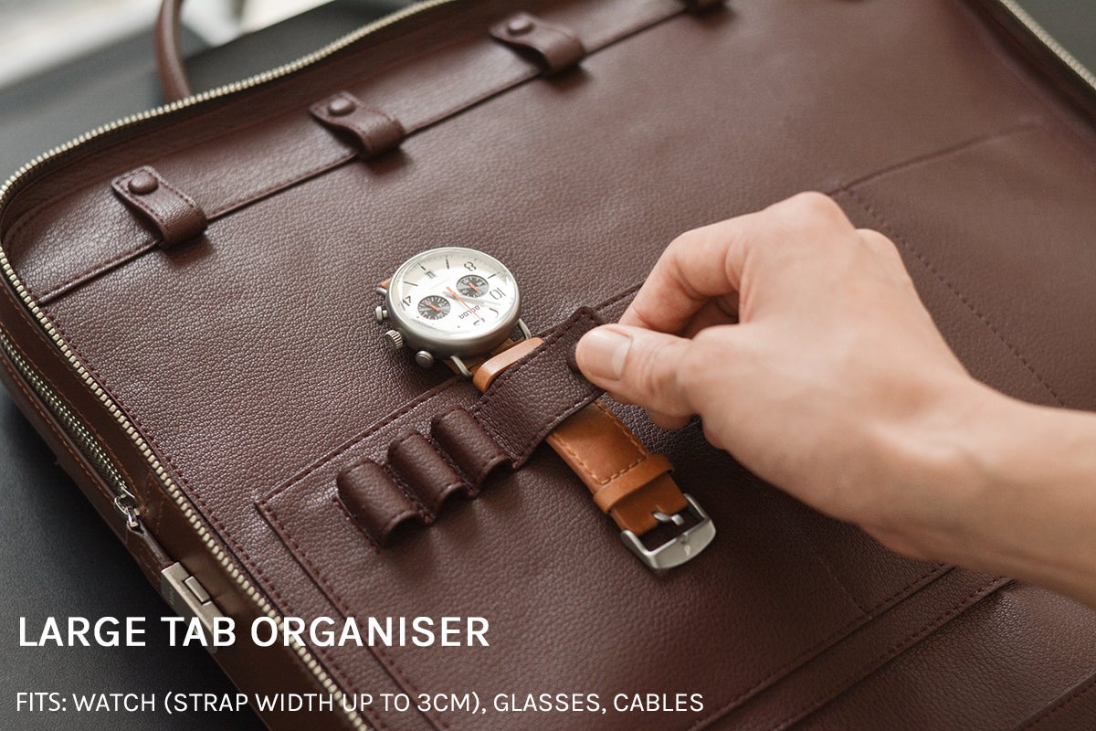 「FAIRE」ブリーフケースは、プロフェッショナルにとって理想的な洗練されたバッグです。名刺入れ、キャリーバッグに装着するためのスロットスラップ、パスポート用ポケット、スマートフォンのSIMカードやSDカードを入れられる小物入れなどを備えています。 また、ノートPC、タブレット、スマホ、ポータブル充電器など、ハイテク製品を収納できるコンパートメントも装備。必要なものすべてをすっきり収納できて、すばやく取り出すことができます。