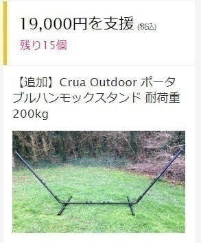 《Crua社 純正ハンモックススタンド》https://www.makuake.com/project/koala-hammock/