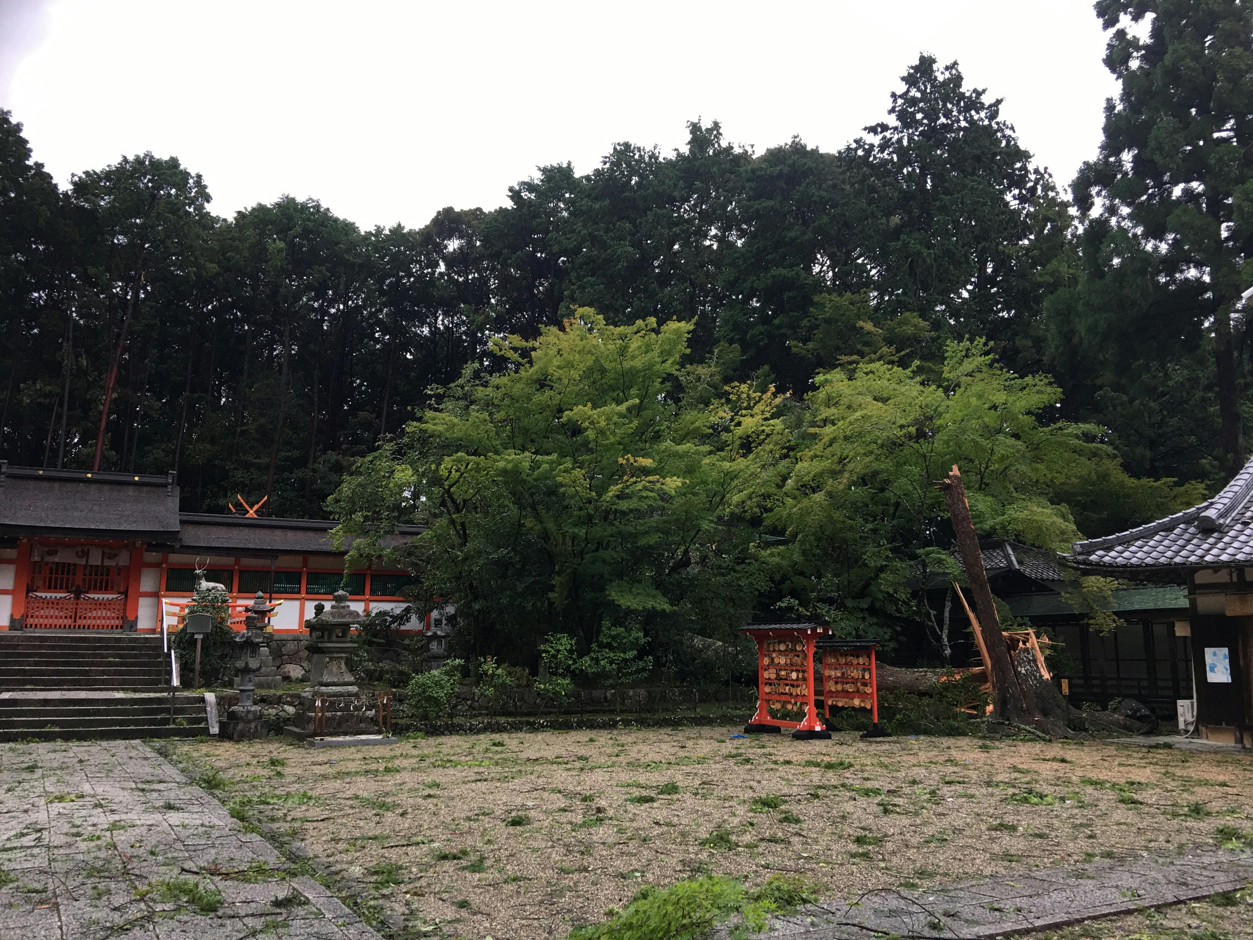 現在の日本は、少子高齢化や出生率の低下が問題視され今までの社会システムは綻び、日常生活にも少しづつ影響が出始めています。ここ最近では、異常気象で台風や地震が頻繁に起こり多くの地域で被害が出ています。今まで京都は比較的被害は少ない地域でありましたが、今回の台風21号では一般の住宅はもちろんインフラにまで影響が出ています。大原野神社においても一つのシンボルである区民の誇りの木樹齢450年のモミの木や境内にも多大な被害がありました。そういった中で、もう一度今までのような同じ生活に戻すことは簡単ではありません。体験して災害の辛さや大変さを身にしみて感じ普通であることの当たり前の有り難さがわかります。