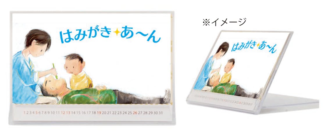 絵本、歯磨きカレンダー+シール、歯のペーパークラフト、歯磨き手法図解ポスターの4点がセットになった「はみがきあーん」の基本セットです。それぞれを絵本と組み合わせて活用することで、子供歯磨きの習慣づけを効果的に行います。