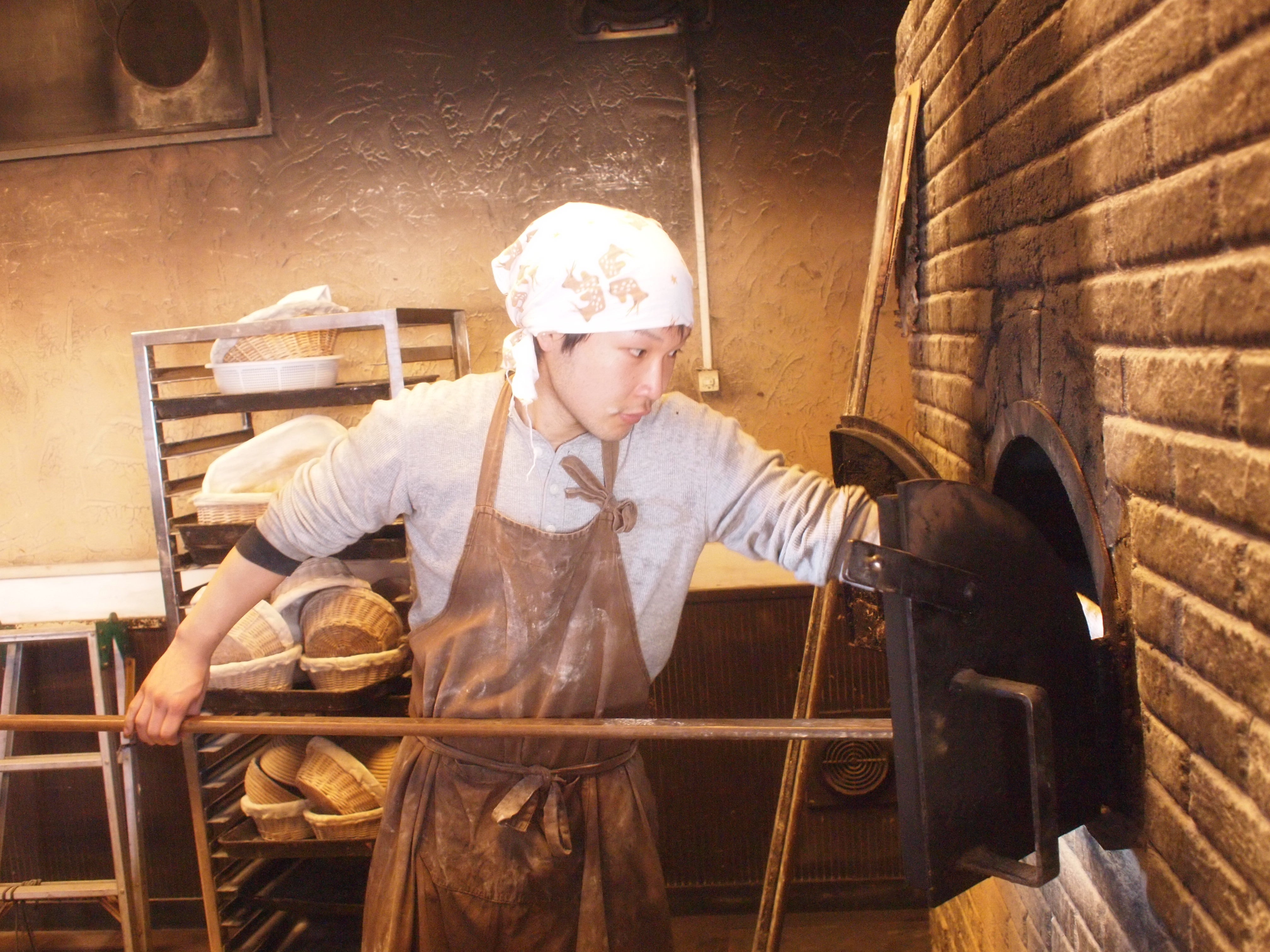 そこで、とある学生プロジェクトに参加して、お世話になっていた方から小麦の種を譲っていただきました。小麦粉はよく見ますが小麦の種は初めて見ました。この小麦をどうしたら繋いでいけるのか考えた時に粉にしてパンにすればいい、天然酵母というものがある、それは一度作った種に粉と水を足し続ければ残り続ける、そうすれば最初の小麦がなくなったとしてもその小麦の意志のようなものは残るのではないか、そう思って独学でパンを焼き始めました。毎日、種に新しい粉と水を加える種継という作業を続けている自分がいました。それはお腹が空いたらご飯を食べるような自然な感覚でした。これなら続けられる。そう思ったとき、自分はパン屋になろう。そう決断しました。震災のこともあり、地球になるべく負担はかけたくない、やるならこの先も残り続ける方法でパンが焼きたかった。もう薪窯しか考えられませんでした。薪窯で焼かれたパンには焚かれた木の香りが宿ると言われます。それは決して電気やガスオーブンでは体験できない、お腹がすく、いい匂いなのです。遠赤外線で焼かれるので中の水分は保持したままパンは焼き上げられます。時間が経過してもしっとりとしているパンは明日、明後日を考えて作る薪火野のパンには最適でした。