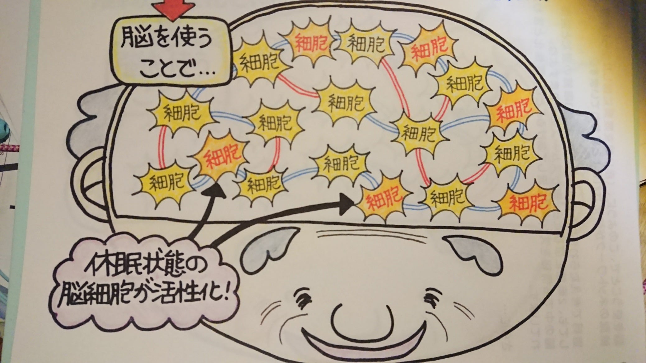 脳を使うことで、細胞と細胞を結ぶネットワークを強化し、脳内にある休眠状態の細胞を脳を使うことによって活性化することです。