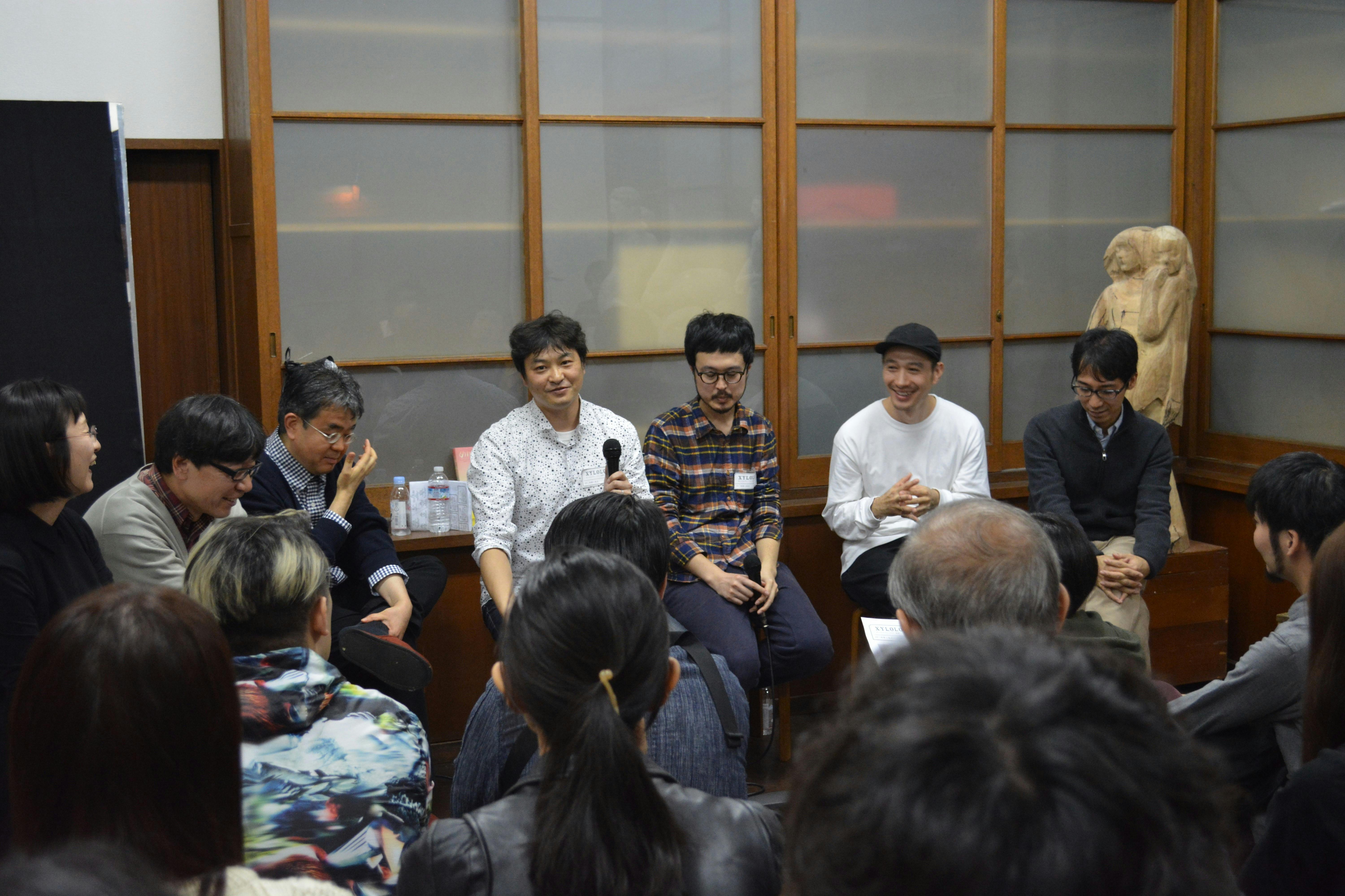 2018/11/01 19:24展覧会いよいよスタートしました! 初日二日目、土日ということもあり非常に多くの方々にお越しいただいております。 2日目の10月28日、「トリメガ研究所×木学xylology」の座談会が開催されました。 美術館学芸員によるトリオ、トリメガ研究所。ジャンルの垣根を超え、広く視覚文化について考察する展覧会の開催を目的とし、島根県立石見美術館、青森県立美術館、静岡県立美術館の学芸員3名により、2008年6月に結成された研究チームです。 そのお三方と木学から金巻・小畑・中村・永島の4人がトークさせていただきました。 学芸員の視点と、毛色の違う4人の作家の思いが混ざり合い非常に面白い話となりました。 会期まだまだ続きますがよろしくお願い致します! もっと見る