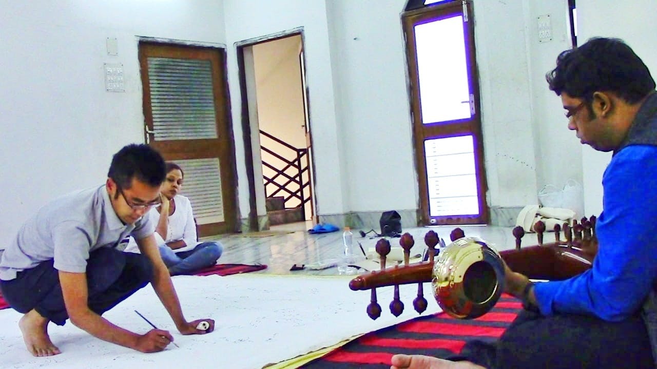 コルカタ文化に影響を受けたヴァイオリン曲を表現するコラージュ作品