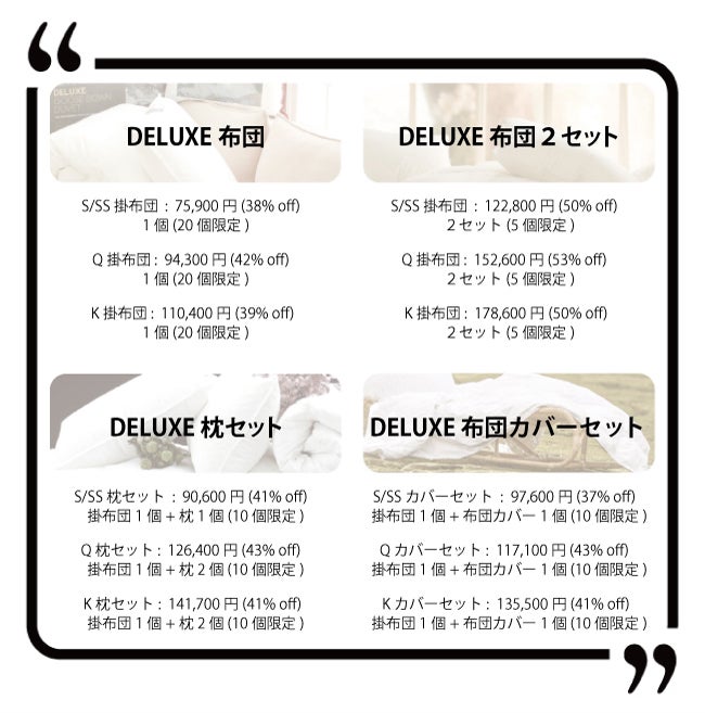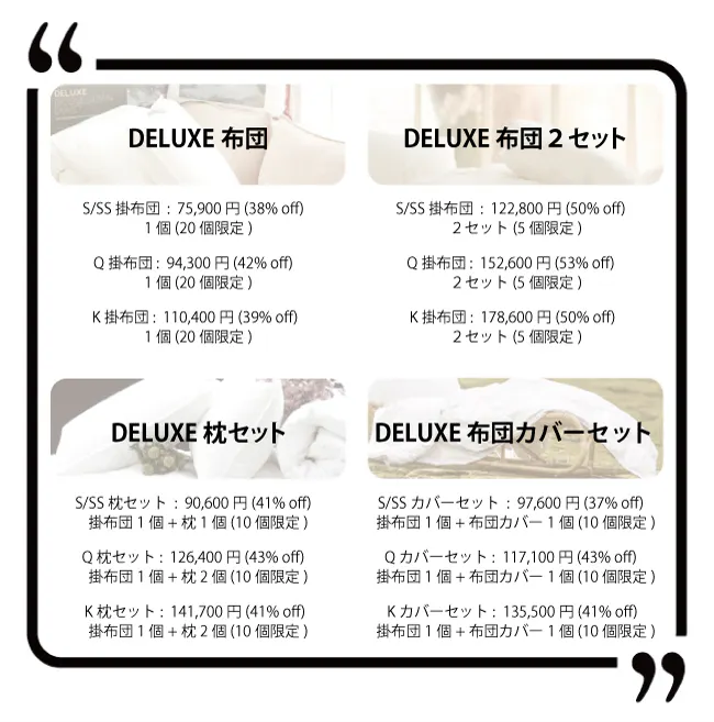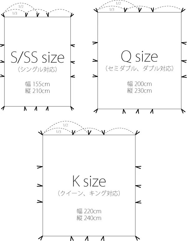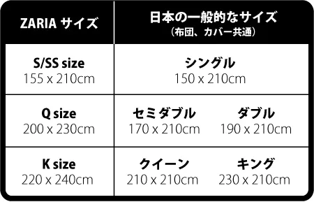 ★日本の寝具とヨーロッパの寝具のサイズは異なるため、下記の日本サイズを比較してから購入をお願いします。