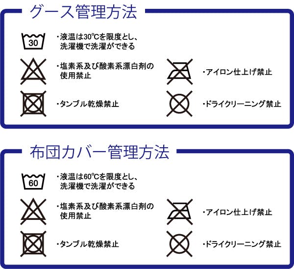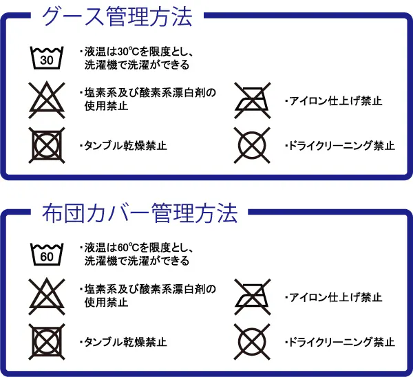 A : 水洗い可能です。ただし、中性洗剤、低温で年1回を勧めます、普段はほこり除去や天日干しし、もし部分汚れの際は該当の部位だけをぬれ布巾あるいはウェットティッシュで洗浄してください。クリーニング店ではなくグース羽毛布団を専門にしてくれるクリーニング店に任せることをお勧めします。グースは高い熱を加えると壊れますのでドライクリーニングはしないでください。。