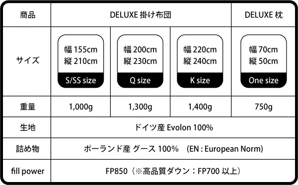 A :はい。掛布団と同じく100%ポーランド産グースとEVOLONで制作されました。