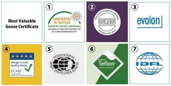 ⑦ IDFL羽毛検査機関:アメリカで設立された羽毛検査機関から公式認証を取得した製品です。