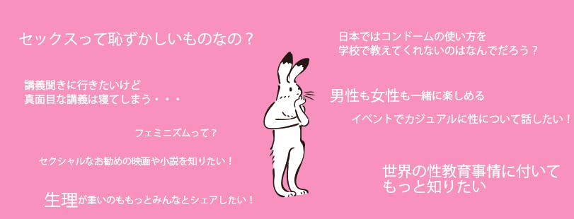 自己紹介から見て分かるように性の抱える問題に違和感を感じ始めている10代〜20代の層へのアプローチがが得意です。しかしながら私達の目的は男性女性年齢層問わず性に対する新しい価値観の共有をもくてきとしています。今回クラウドファンディングを使ってより幅広いターゲット層にこのイベントを知ってもらいたいという目的もあります。