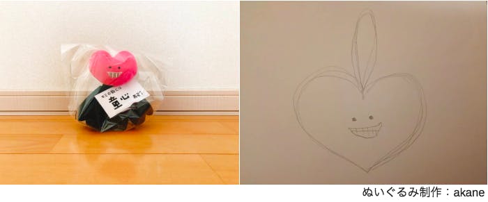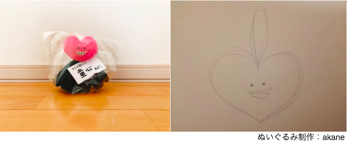 前田デザイン室のアパレルデザイナーakaneが、童心くんのぬいぐるみ(顔のみ)キーホルダーを制作します。