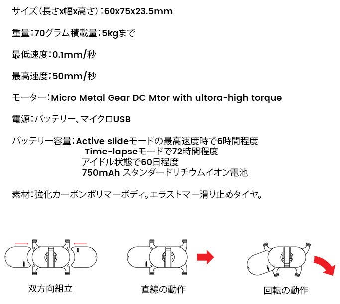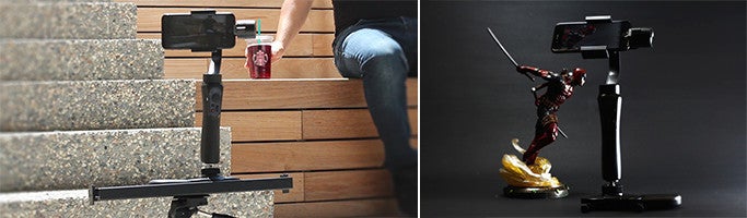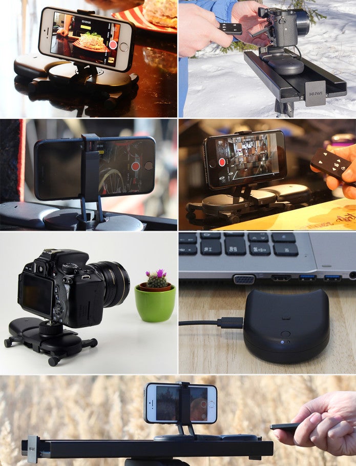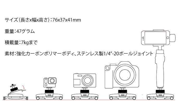 初のスマートフォンやカメラ用ポケットサイズのドリーは、誰でも映画のような映像を撮影することを可能にします。 この1つのツールで、これまで以上に直線や曲線の安定した動きを撮影する事が簡単になりました