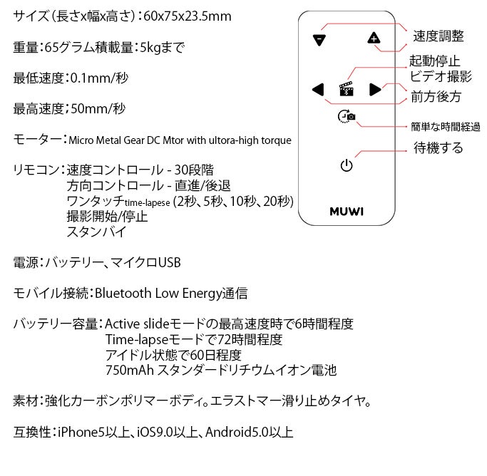 Bluetooth接続とリモコンを介して、MUWIは撮影と移動を同時に行えます。