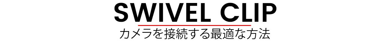 SWIVELクリップはスマートにどんなカメラでも接続できます。 SWIVELクリップをスナップするだけで、ミラーレス一眼、一眼レフ、またはアクションカメラを取り付ける事ができます。