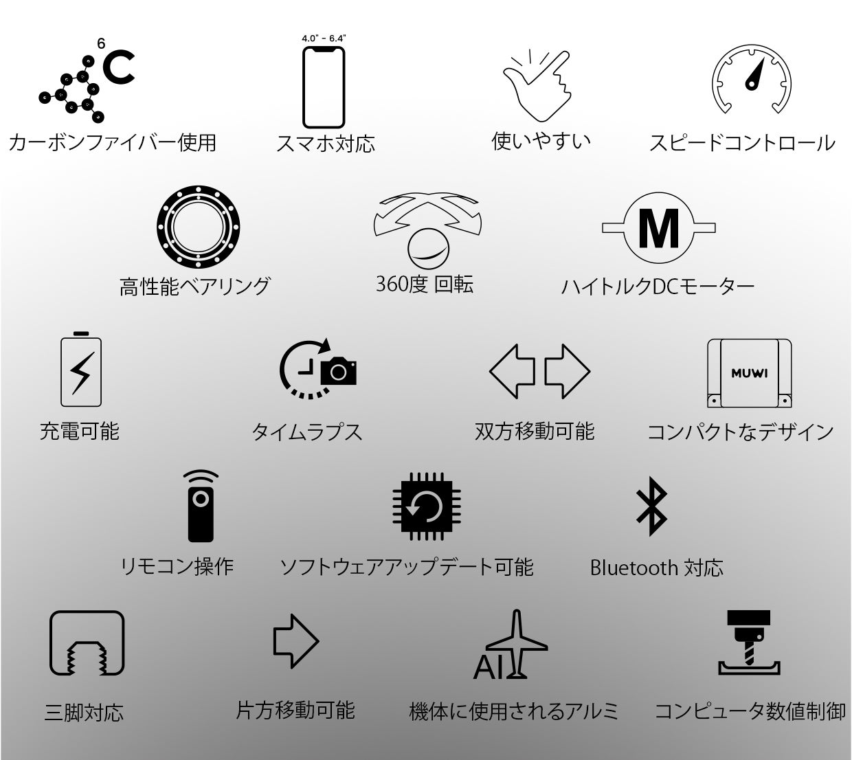 MUWIは便利です。 トラック、パン、ドリーのショットを簡単に実現できます。