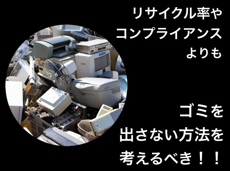 しかし、私が産業廃棄物の処理に関わる営業マンとして勤務した経験上、企業や団体から不要なモノが出た際には、「リサイクル率を高くする」や「コンプライアンスを遵守する」といったこと注力していて、「不要なモノは捨てる」ということが大前提になっているケースが多いように感じました。(その背景には社名や団体名が入ったモノが不法投棄されたりして、社会的信用を失うリスクを回避するためということは広く知られています)