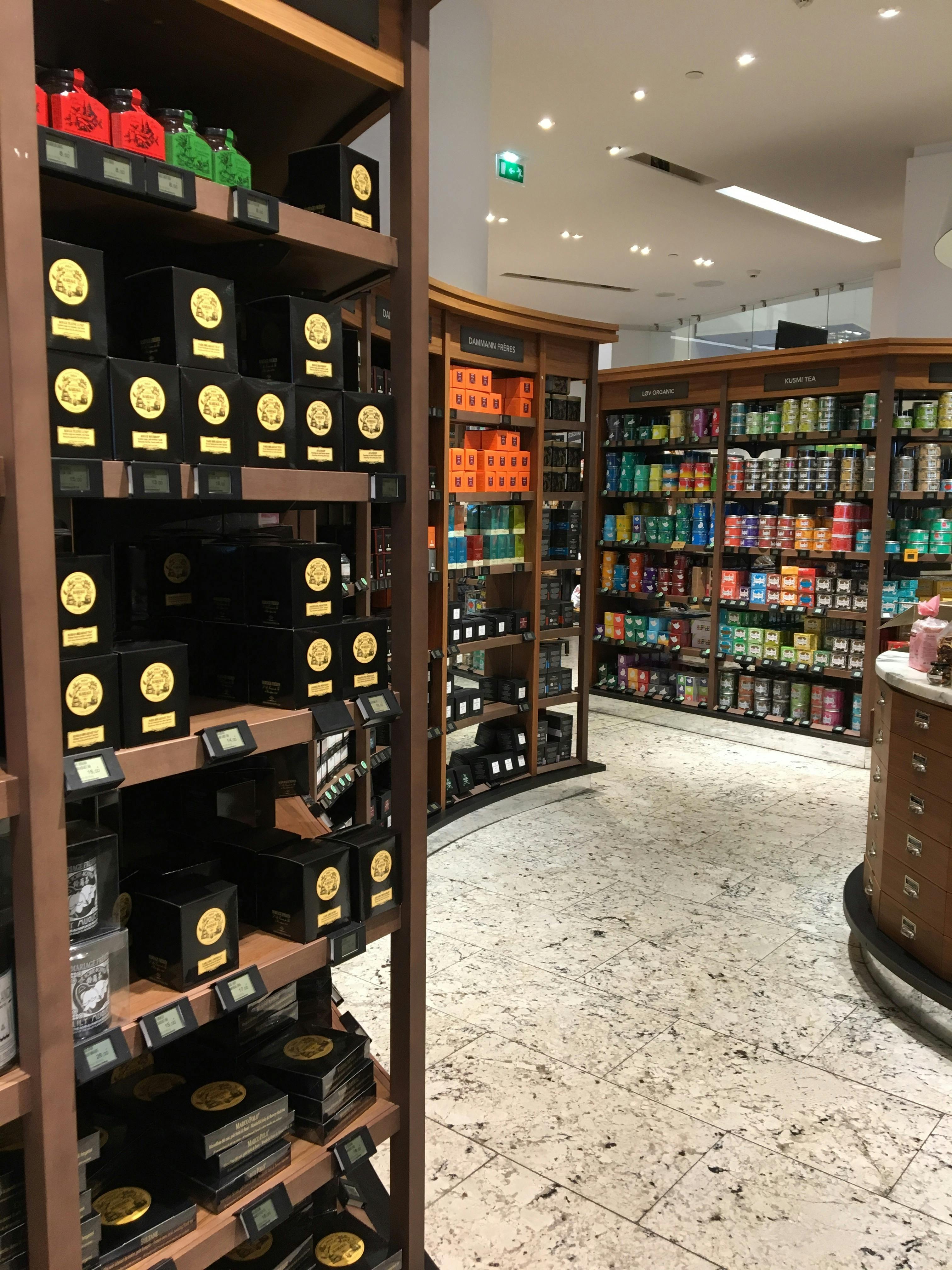 お茶好きの日本人としてはやはり、日本から来た日本茶ブランドがこの棚にもっと並んでいてほしい。