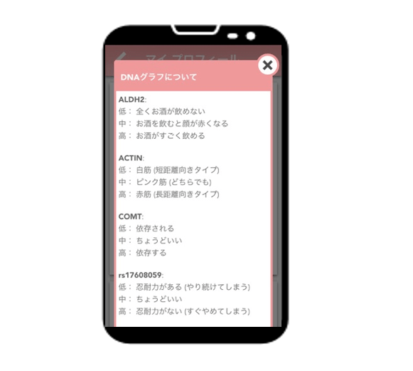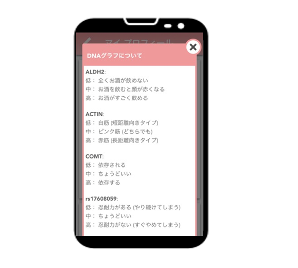このようにDNAだけでなく価値観の差をマッチングしてくれるので、精度の高いマッチング支援ができるようになっています。