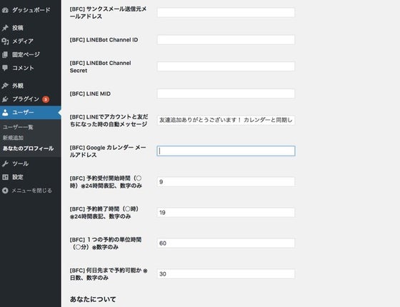 2016/09/11 21:00・LINEのアカウントを友達追加してくれた時に送るメッセージ・アポの時間を何時間に設定するか・一日のうち、何時〜何時まで予約可能にするか・何日後の予定まで予約可能にするか・相手にリマインドを送る際のメールアドレス こういった運用上の個別設定を制御するため管理画面を作っておりまして、開発環境としてWordpressを使用しています。WordpressはWebサイトの更新を簡単に行うことが出来ることから、世界中でユーザーが多く、スタンダードなシステムになっておりまして、bot for calの思いと一致していると考えました。もちろん、Wordpress自体を触ったことがない方でも操作しやすいよう、マニュアルをお渡し致します。 もっと見る【進捗報告①デモアカウント】