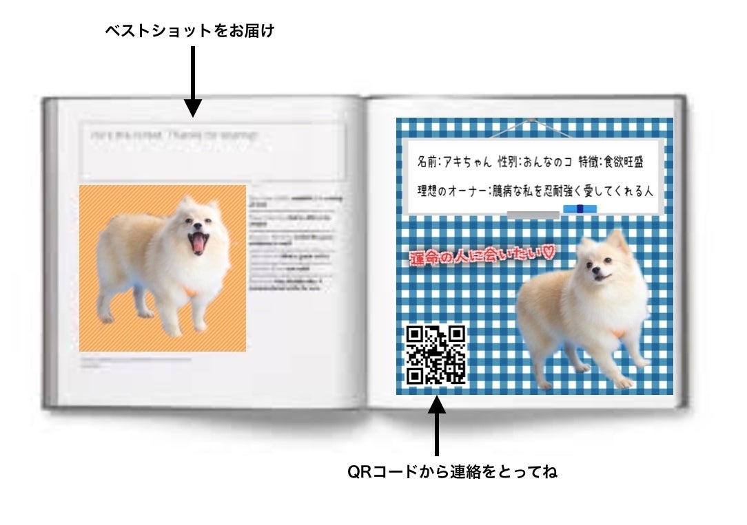 ★フォトブックに記載されたQRコードまたはURLからイヌネコさんが所属する団体さんと直接連絡とり『新しい家族=ネオファミリー』に出逢うことができます。