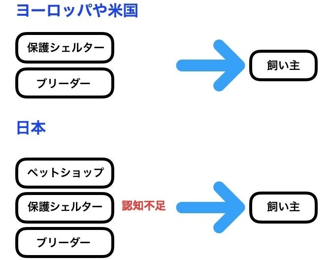 その時に、ヨーロッパや米国では犬猫を家族に迎える時は『シェルターから引き取る』ということが『主な方法の一つ』であるということを知りました。