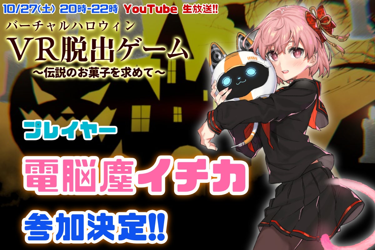 バーチャルハロウィン VR脱出ゲーム ~伝説のお菓子を求めて~ に、プレイヤーとして、『電脳塵イチカちゃん』の参加が決定いたしました。
